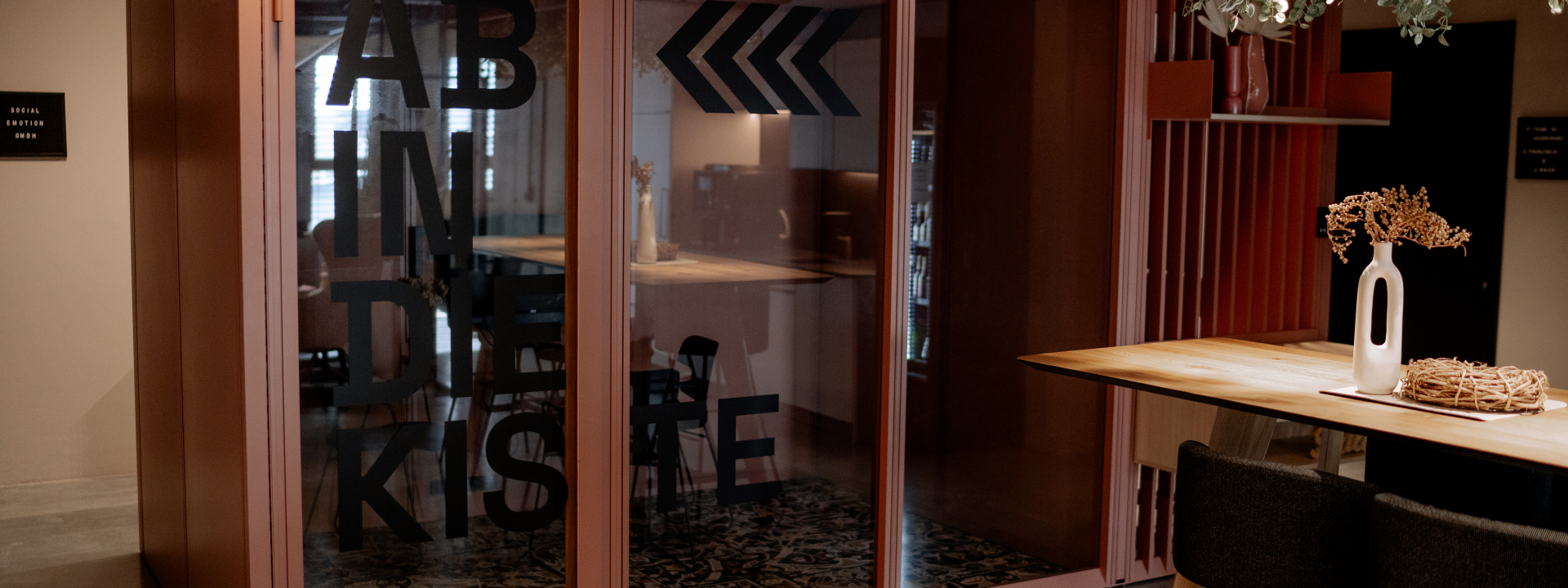 Die Vorstadt ist der multifunktionelle Vorraum für den Raum Seeblick und den Raum Bergblick (*coming soon). Hier kommst du in lockerer Atmosphäre an und findest die Teeküche mit einer kleinen Bar und eine Arena für Vorträge oder ungezwungenen Austausch.